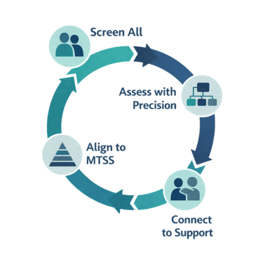 Screening data plugs directly into your existing Tier 1, 2, and 3 intervention frameworks. No parallel systems. No data silos.